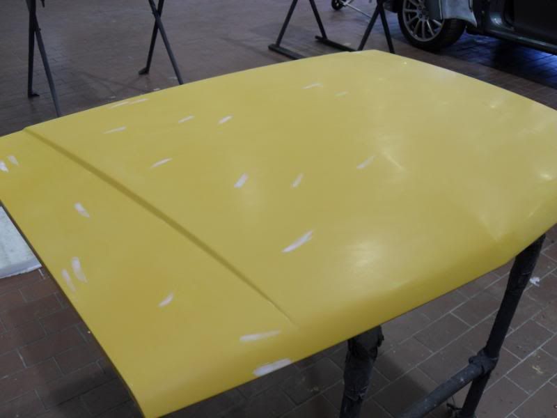 Once the inside was finished the bonnet was flipped over and sanded then all chips filled..........