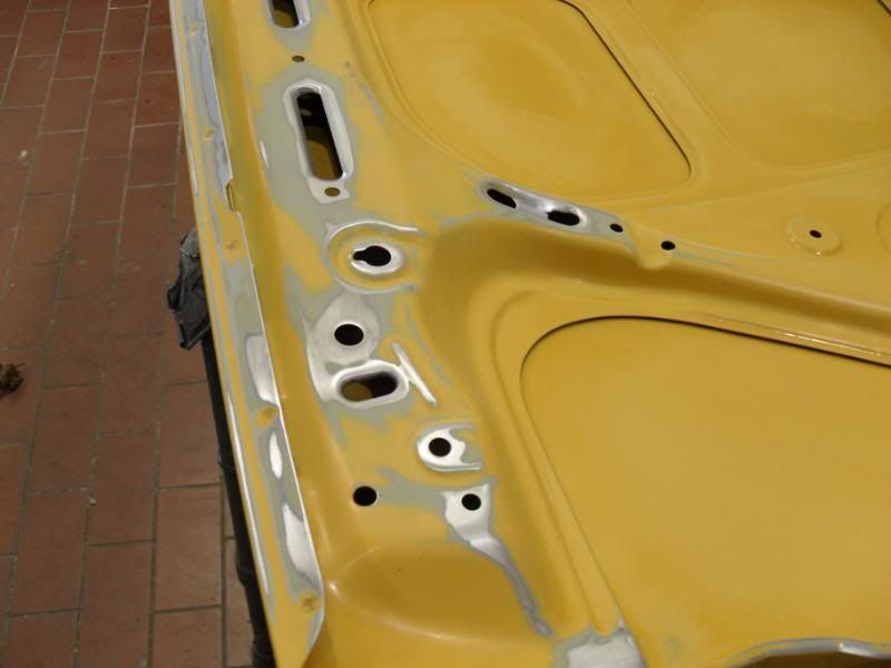 Once that was sorted I thought Id have the bonnet off and took it to work for paint. It was very clean but has some very slight bubbling around some drain holes. So I thought just to be safe I cleaned all them up......