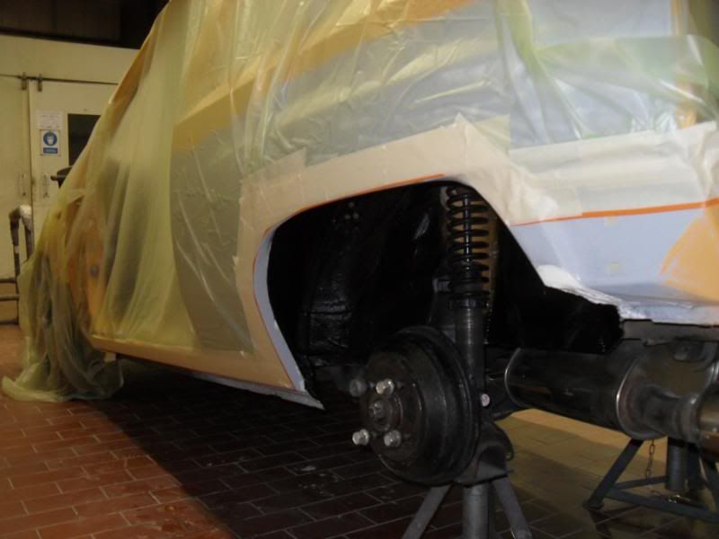 The primer will be left for a few days to allow for any movement as they were fair size repairs etc. It didnt stop me cracking on though! Rear wheel arches were gravitex'd over the seam sealer behind the arch for max protection etc........