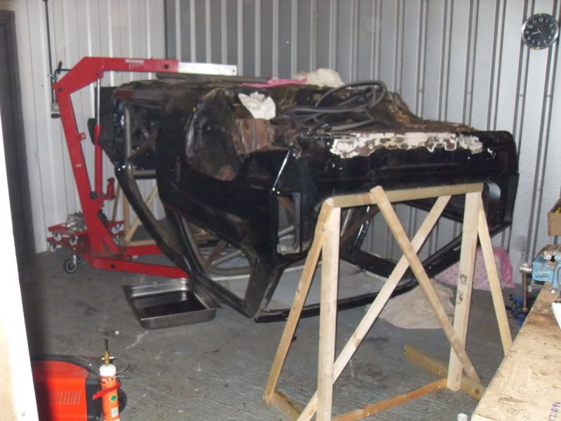 i got the car stripped over the weekend, did take a few pictures but my camera decided to delete them all :( any way the track car is sat on stands and the road one is now on the spit :thumb: hopfully get it in paint asap so i can get it build just need a heater and a compressor :pmsl: