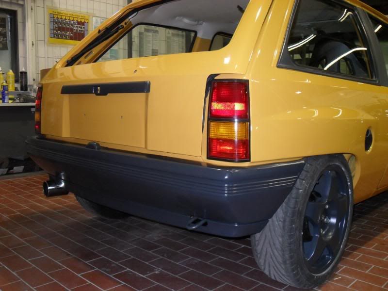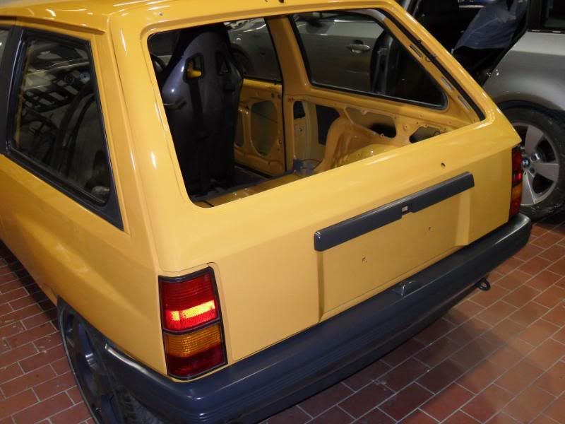 The rear bumper,smoothed and painted boot grab and rear lights also went back in with my new euro fog as Im not a fan of the reverse light.......