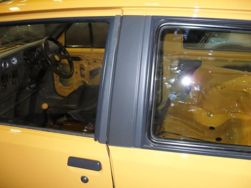 The engine bay now matches everything else being uber shiny! Following that a few more parts when back on after work today.... The gm 3 piece pillar vinyl set was applied and rear windows went in.....