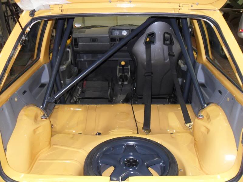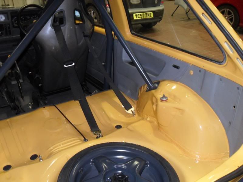 Just the passenger seat and front half of the cage to add really build up wise then a huge cleaning mission as the cars covered in dinitrol,copper slip,overspray and dirty paw marks not to mension filler dust but I didnt expect anything different with spending a few weeks sat in the workshop! Im just currently trying to find the roll of red pinstripe in the loft then i can add that tommorow etc. More hopefully at the weekend guys. Big thanks to Keith by the way for a few emergency parts shipped from ireland in uber quick time! Thanks for reading, comments welcome!