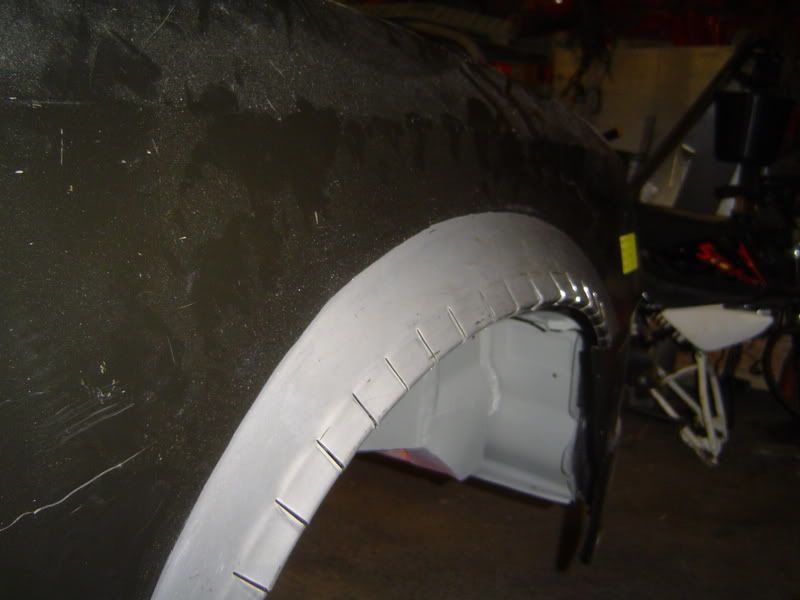 The arches fit the wheels just nicely now, although this pic is a bit dark..