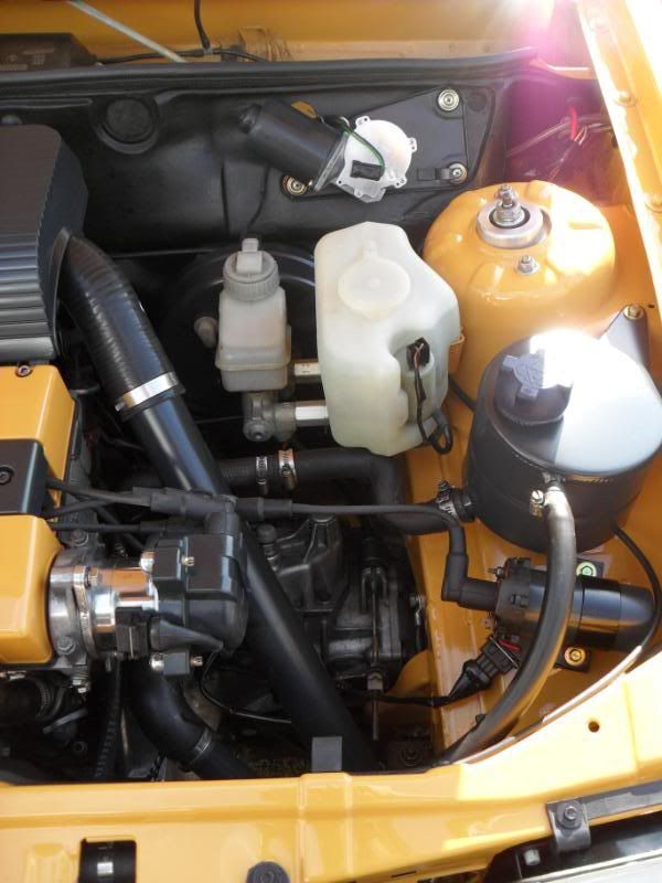 As said at the weekend we've been busy again with the nova... I dropped the car off saturday morning and a few hours later once it had cooled down the coolant was drained and stat housing,hard boost pipe and lower water bar were removed. Later on that afternoon they were prepared and painted using the same semi matt grey Ive used everywhere else on the car. Monday morning saw them dropped off to be refitted at which point my previously painted bailey header tank was also fitted along with fresh coolant added. More items I painted a while ago were the gsi/gte spec servo and mustard engine covers along with a new rocker gasket have also made their way on. No shiny pipework now leaving the bay looking more subtle.......