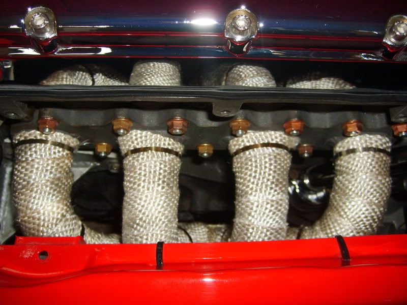 Quick manifold shot whilst no heat shield is on... note new studs,nuts and nice white heatwrap!