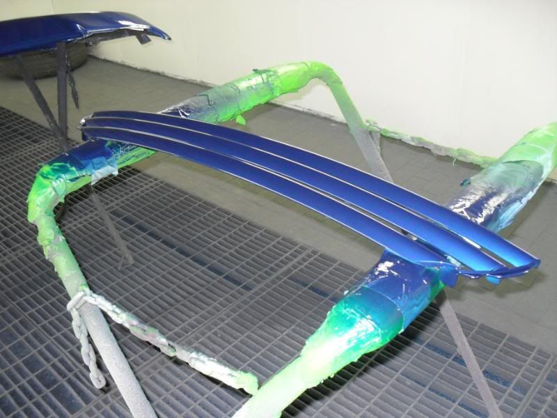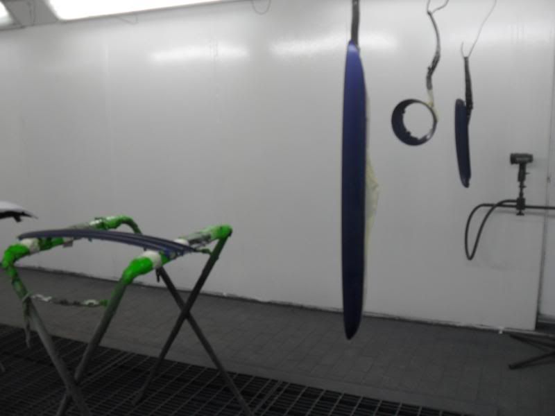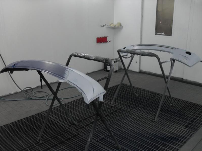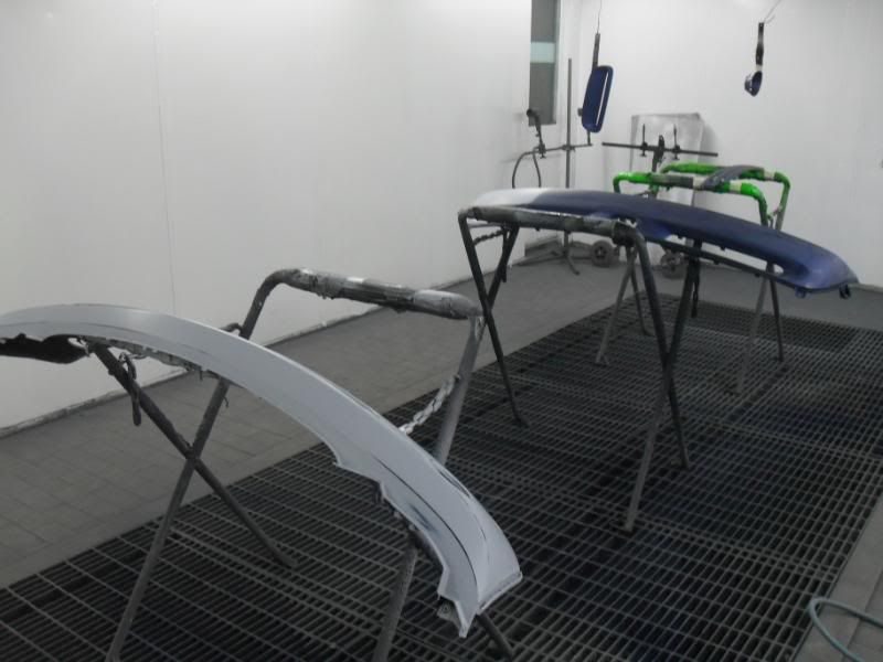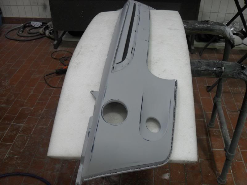 By sunday afternoon I had the primer on the bumpers rubbed down and the other various items ready for paint.........
