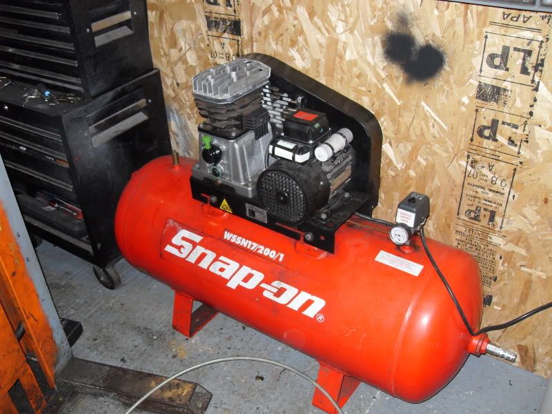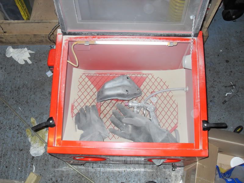 tyres turned up yesterday, finally got the new head for the compressor aswell so thats now working pucka. treated my self to a shot blaster today aswell. just needs a little modding to fit a 16 wheel in it lol