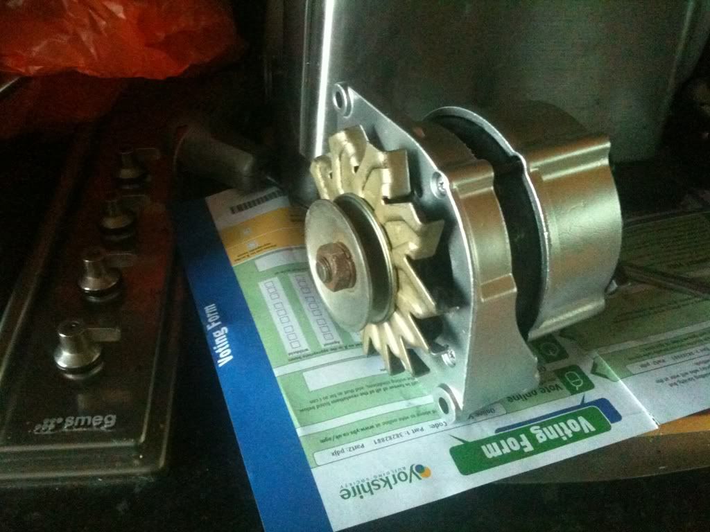 got a new alternator to replace my nasty rusted noisy one, spent hours sanding flat and buffing before the nightmare of fitting it from underneath, bloody scratched it and after all that it doesn't bloody charge. Took it apart and broken bits dropped out.