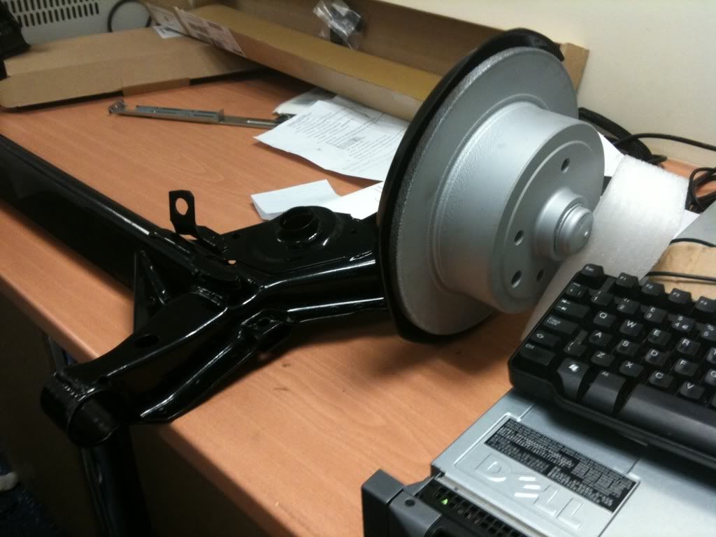 rear beam bits, brakes were rusty as hell that Will F got for me, much nicer now. Beam powdercoated but I will have to use the anti roll bar of my old beam.