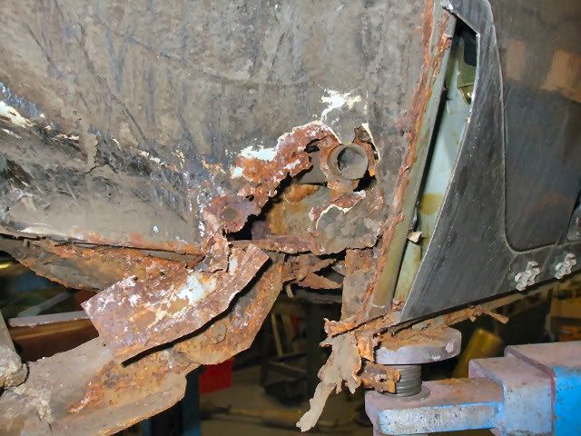 its where the rear axle attaches onto the chassis, we reckon this was mainly due to trapped water behind some black gunk put on the car from a previous repair then the car sitting idle in my garage for a year and a half