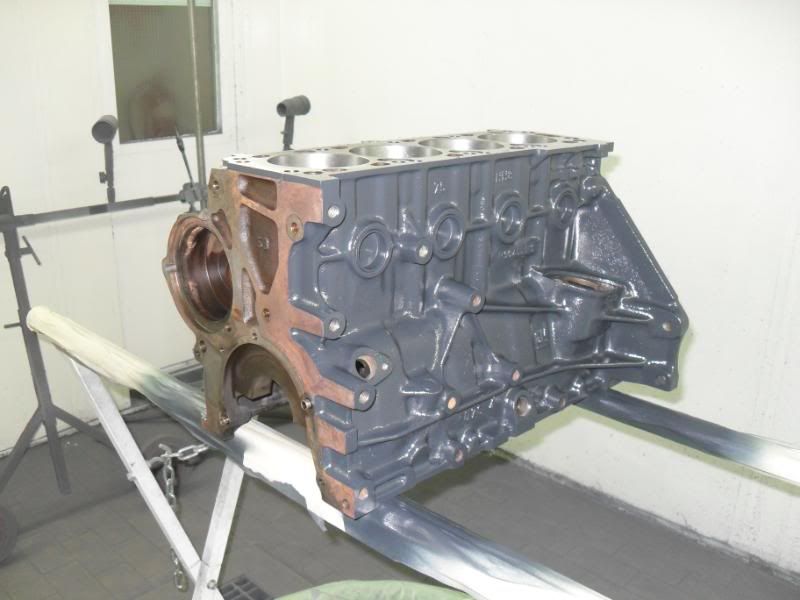 A few weeks later the machine shop called to say the block was ready so I went and collected it and dropped it with my engine builder to check he was happy with the work that had been carried out. He removed the internal oilway bungs and cleaned out the oil ways before giving it to me to clean then prep for paint. Its had a rebore to suit the 87mm omegas and a slight deck also..........