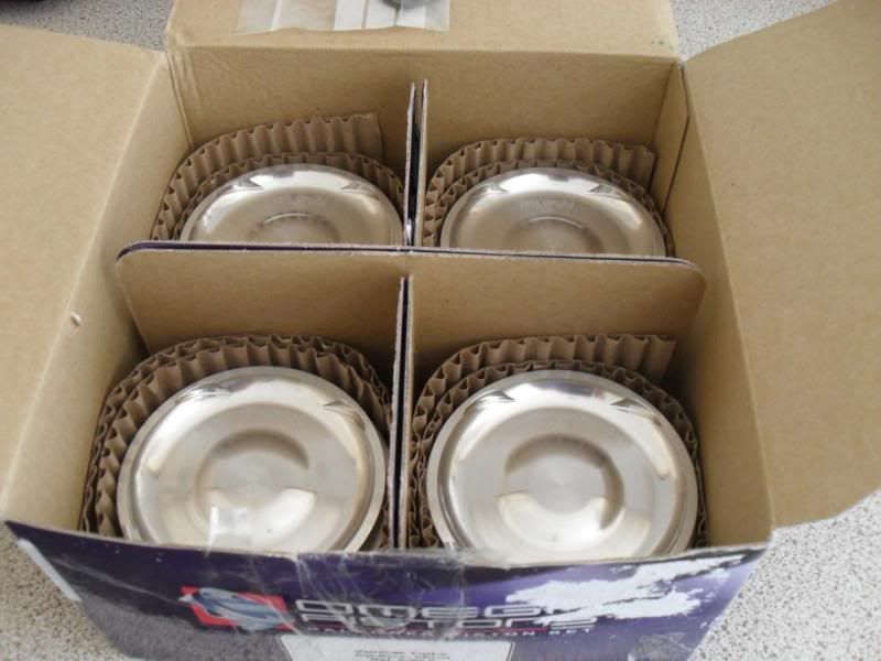 Hi guys its been a while!! But its time to give this thread an overdue update. So were to start then...... Back in december I dropped the block with the machinist not realising at the time he wanted the new pistons with it. So by the time the pistons had arrived and the machinist had come back from his christmas holidays abroad we were well into January. Once his shop was back up and running I called in and dropped these 87mm forged omegas off with him so he could get to work........