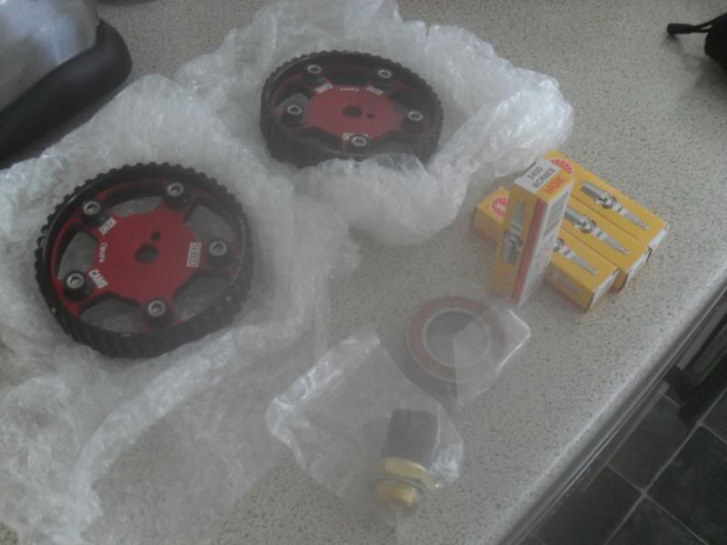 Some verniers from sbd to retard the timing for the xe inlet cam, new Ngk Bcr8es spark plugs, new dummy shaft bearing and fan switch also.......