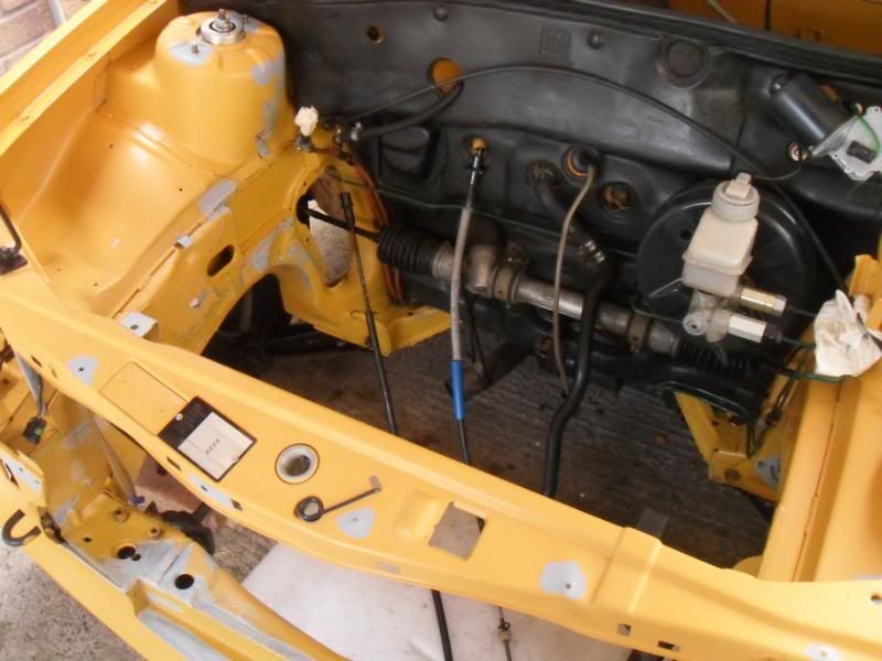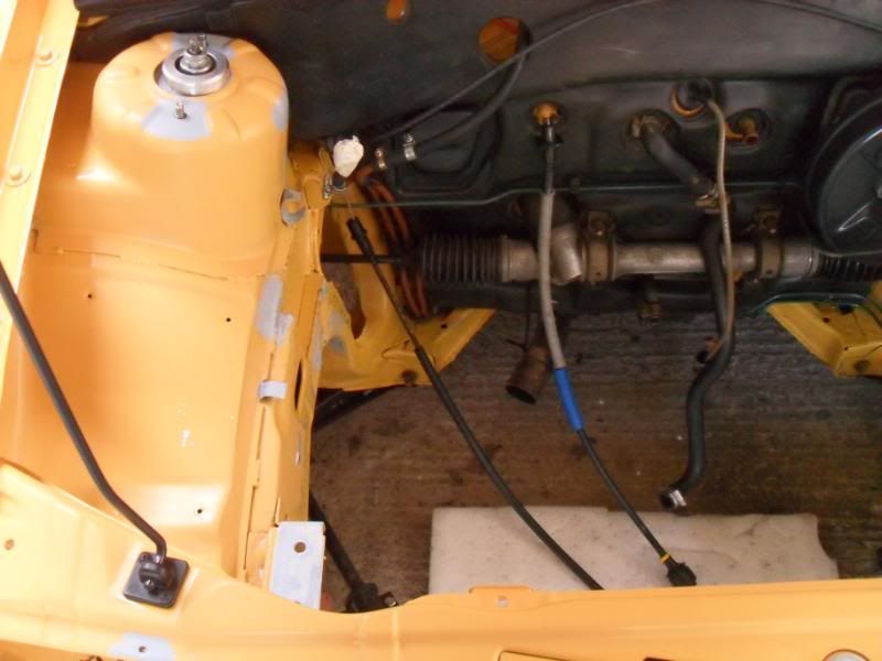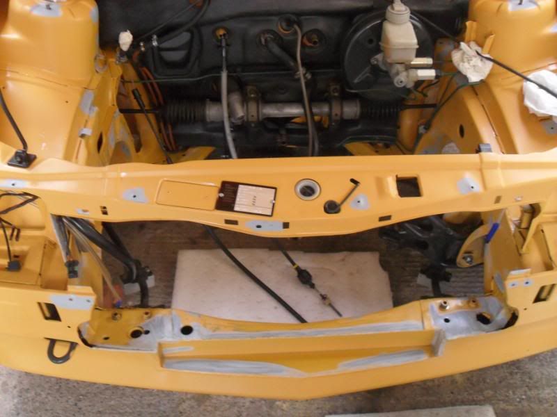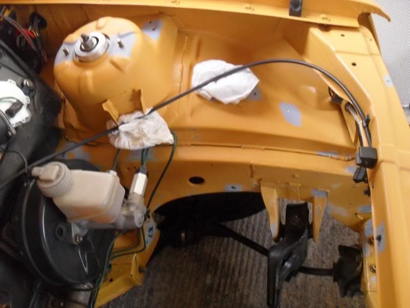Then it was onto preparing the engine bay as the more I get done at home the less I will have to do once its back at work etc. First up was a huge degreasing session to removal all waxoil/grease etc which saw everything in the bay including the steering rack/firewall cover and all paintwork cleaned thoroughly. Once that was done I moved onto rubbing in all the stubborn and hard to get to corners using a flatting paste and finished by wet flatting the whole bay going through the grades as I went. As it is in excellent order their isnt much to repair as such but certain areas were things have been bolted down had marked the paint surfaces so I rubbed these areas down then etched the bare metal and used some high build primer to build the areas back up. Some small chips here and there have also been filled with a little stopper. Although it took me weeks of a few hours here/their the end result should be spot on for it. Once the cars back at work I'll remove the final parts I want off and give it a final prep before paintwork starts. Here's how its currently looking.......
