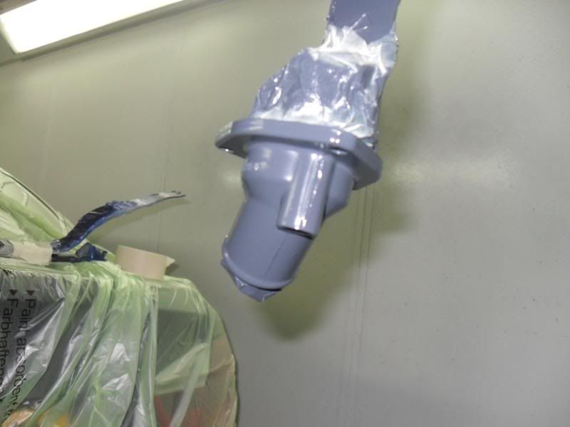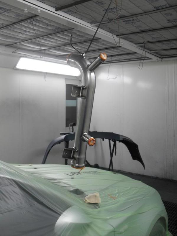 A recently acquired tx replacement rear pipe was then rubbed and painted to remove the shiney!..............