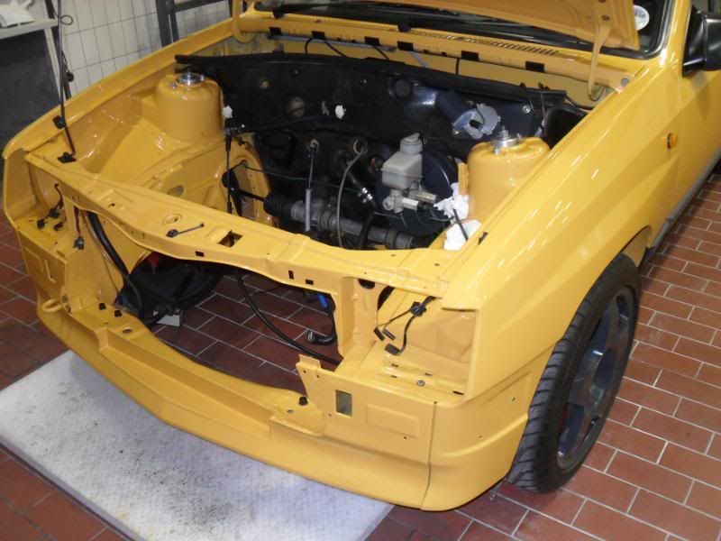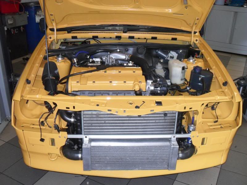 My guys have been busy this week with the nova around their main work but have still managed to make some excellent progress. Engine and box are in, New hubs and equal length shafts are in, New bottom arms, joints and track rod ends are all fitted. The boss for the wideband sensor has been welded into position ready to accept the sensor shortly. Engine is also wired/plumbed and has been started yesterday :) The only setback appears to be two faulty injectors. So two new genuine ones are on route from germany and should land wednesday next week due to the bank holiday etc. Once their in it will only needs a few minor things fettling So fingers crossed by the end of next week I may have the car home and I can start running it in. Few pics from earlier today below...............
