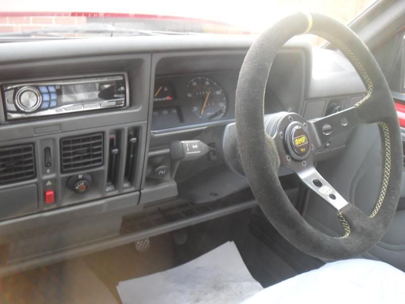 Inside the car has seen an omp boss/seude steering wheel added as well as an ebay bargain (£30) alpine cd player so Im now able to play my cd's which is a bonus! Period stereos suck!........