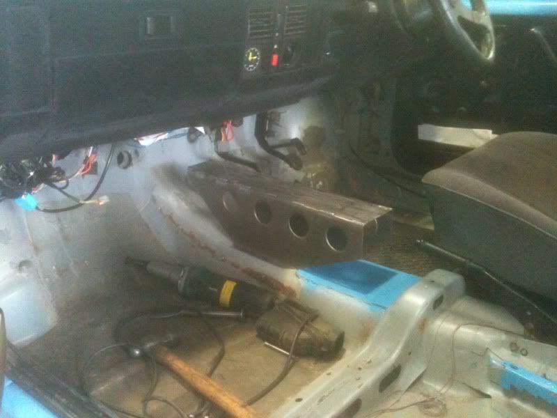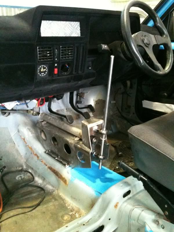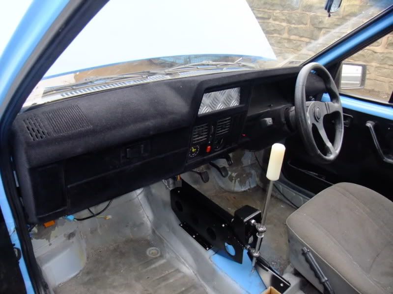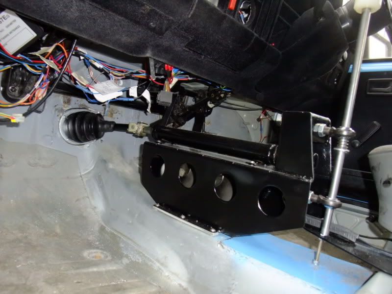 They removed the carpet support completely, nicely, painted the floor and fitted what can only be described as a pretty professional looking quaife/race carstyle shifter using the astra linkage part i supplied. And using the hole imade; as mentioned earlier and as expected – raising the floor mounting so itcleared the steering rack.