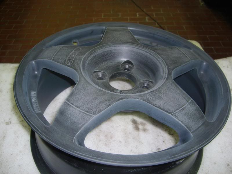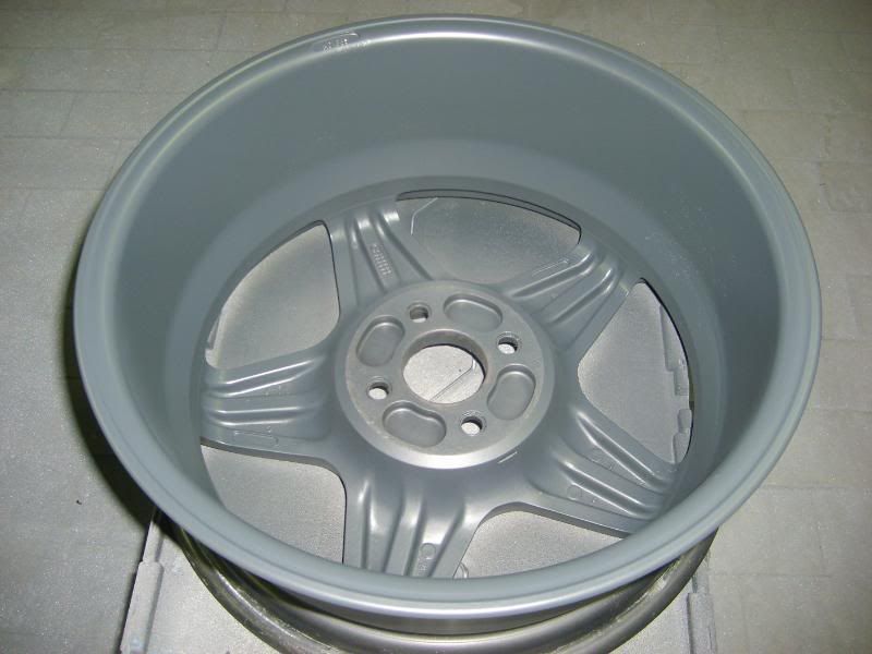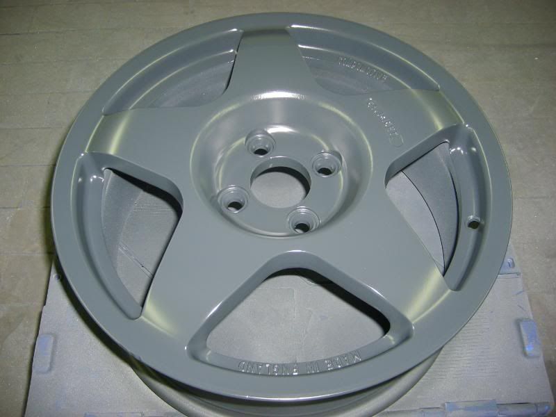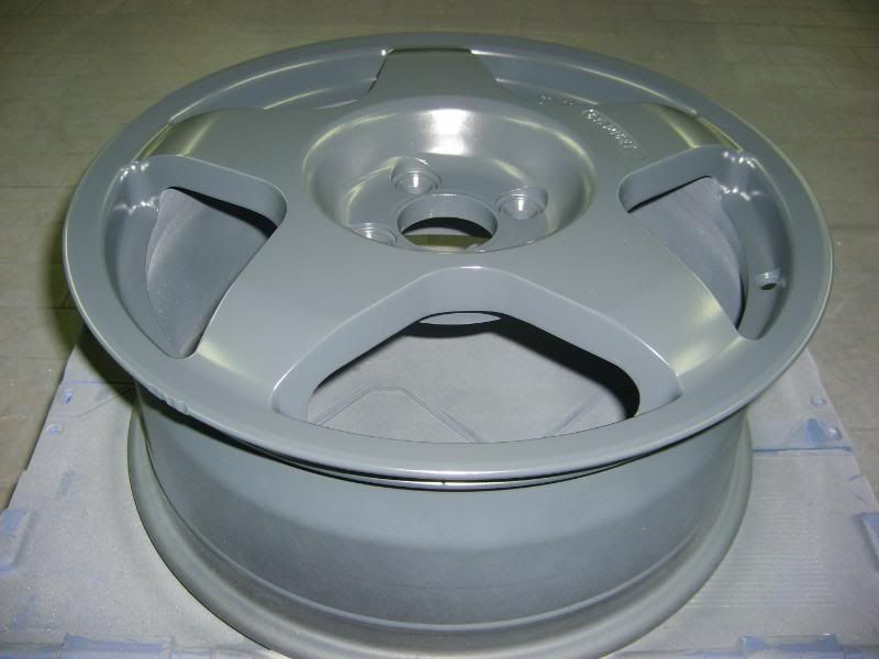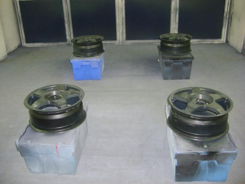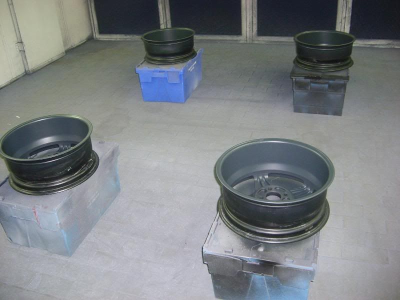 With the colour sorted I dropped the wheels with my local tyre place to have them stripped ready for paint. As Rick had recently had them powdercoated they were in very good condition which made life very easy for me! The insides were rubbed down and painted.......
