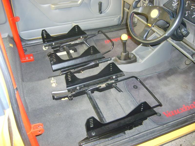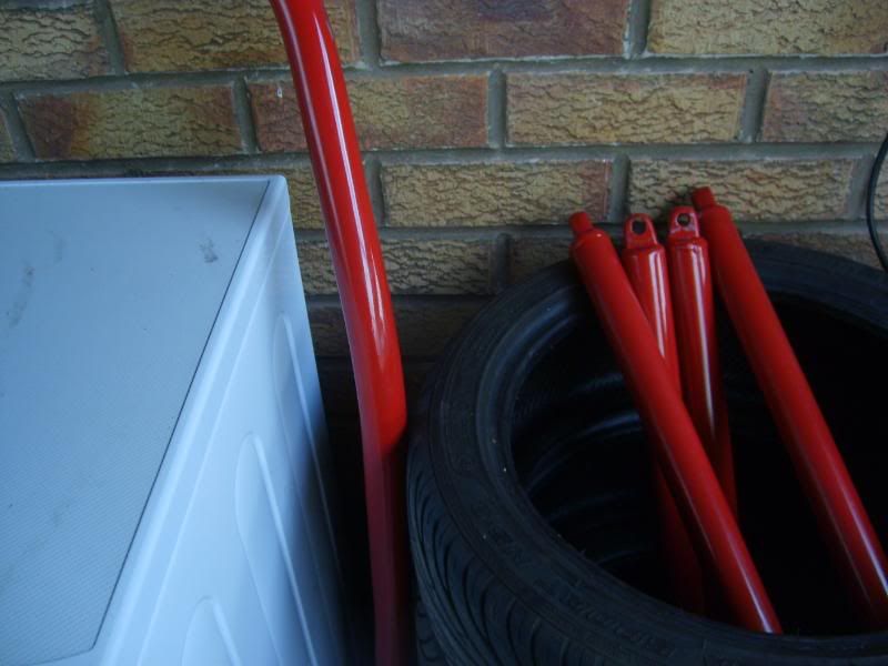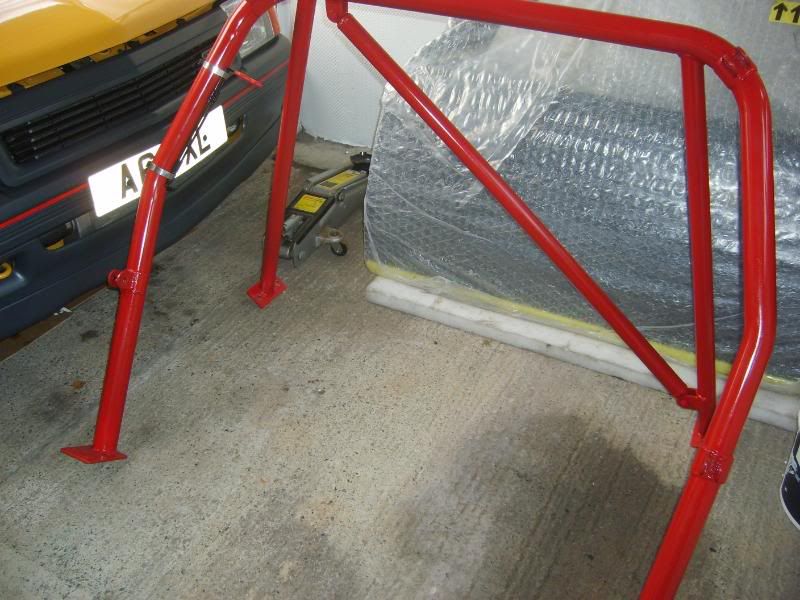 With the wheels all finished my attentions turned to another task I wanted to sort being the cage and its colour. Ive never been a big fan of the red it currently is so I thought as the tax is about to run out anyhow this is as good a time as any to set about the task of removing it! The doors bars,upper fronts and front hoop were pretty simple to remove. I knew the rear half however would need the seats out. So I thought Id chance just removing the seats from the sidemounts to keep things simple hoping the rear half would clear them. Heres the Front half of cage removed and Seats out..........