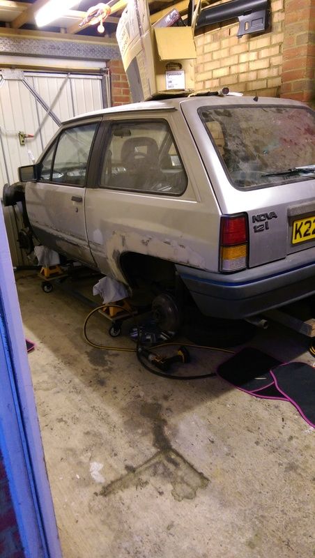Well since i'm working in a single garage to make my life easier I welded up a dolly to make moving the car possible while it has no wheels