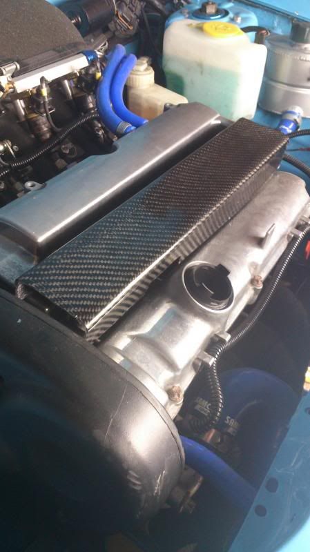 Two other jobs under the bonnet were - a new, more functional oil catch tank. Relocated to the firewall/bulkhead to tidy the engine bay a bit more also a CM Composites custom made carbon fibre spark plug/coilpack cover: