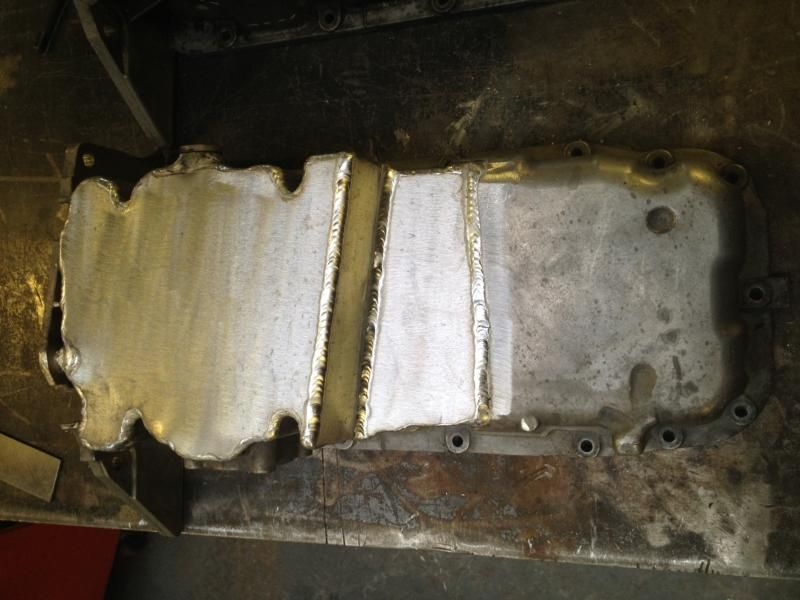 In May '13 I was to start the sump swap over, fitting Adam Dewis' modified Z18XE sump. It just about fit into place and for a little while all was well. Look; a completely newly made from scratch sump bowl: