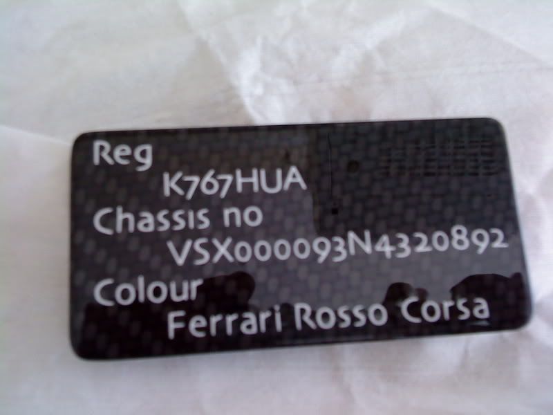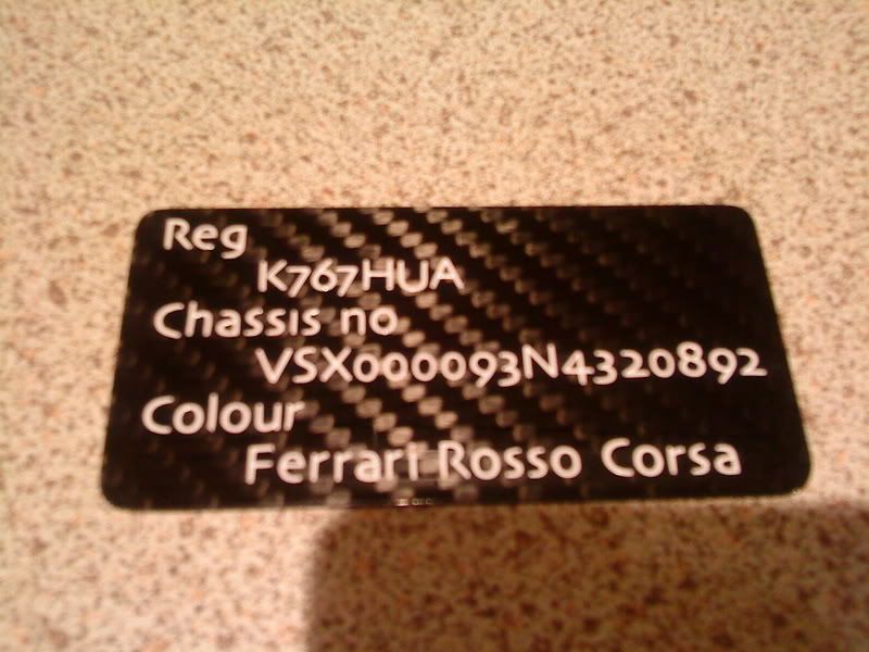 Following the carbon theme I had another idea and borrowed a vin tag from matthew172 cheers mate! Bought a 2*2 twill plate from ebay and had it cut to size/shape....