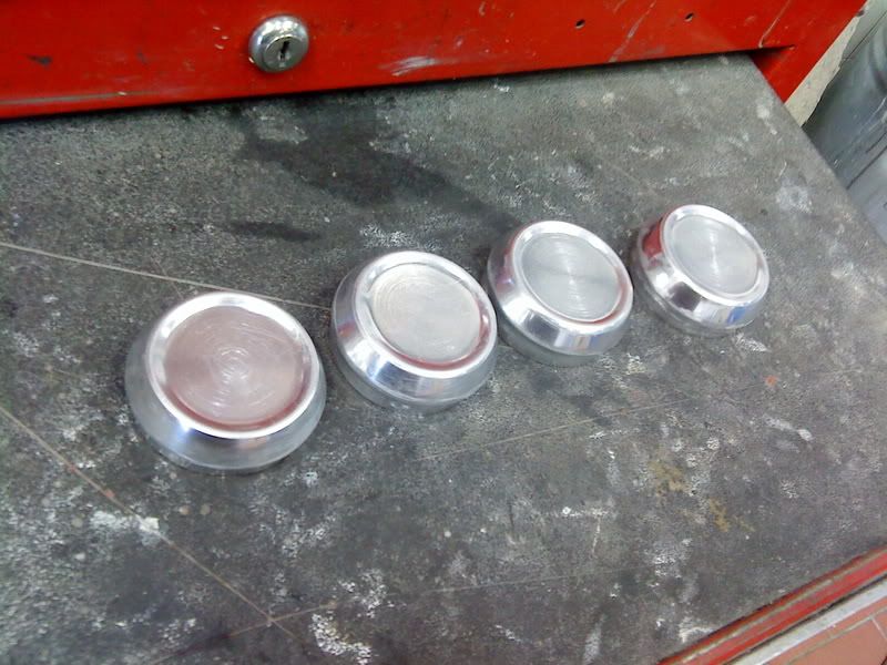The centres for the RL7's were looking rather awful so I treated them to a bath in some paint stripper!.......