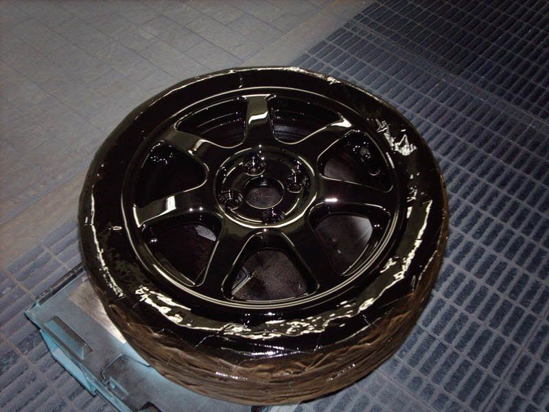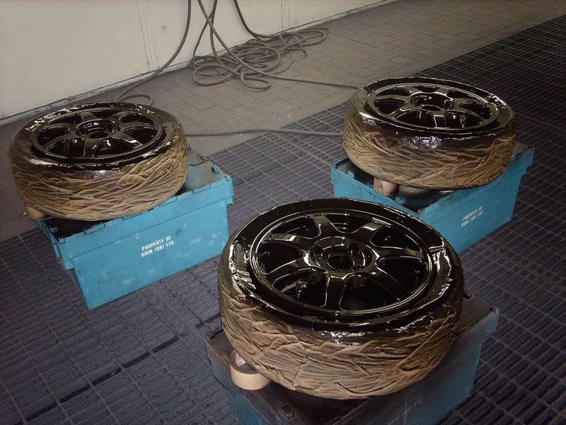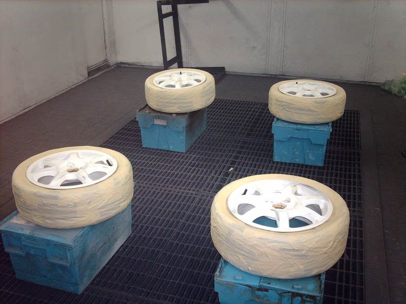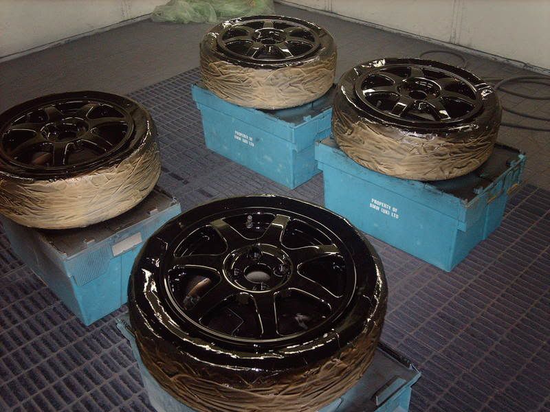 As the tyres has almost had it I just had the beads broken front and rear this allows you to paint the inside and outside at the same time after the tyre is taped up rather than doing the inside followed by the outside which is how I used to do them.