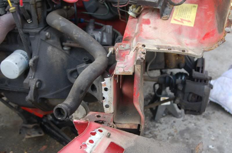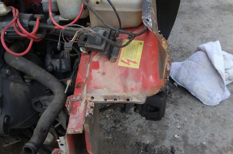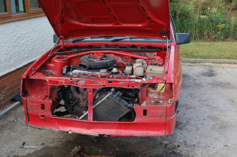 Strip all the bits of the front, including the radiator, bumpers, lights, indicators, wings. I struggled a tiny bit getting the radiator out with the engine in. but managed it.